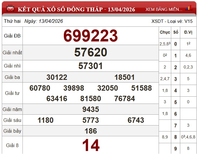 Kết quả xổ số Đồng Tháp ngày 13/4/2026