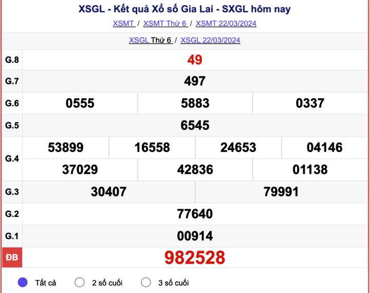 XSGL 29/3. Kết quả xổ số Gia Lai hôm nay - XSGL thứ Sáu ngày 29/3/2024 sẽ được cập nhật nhanh chóng và chính xác nhất trên phuongtruongan.vn. Kết quả các giải thưởng XSGL ngày 29/3/2024 sẽ được cập nhật liên tục từ giải nhất đến giải tám, cuối cùng là giải đặc biệt.