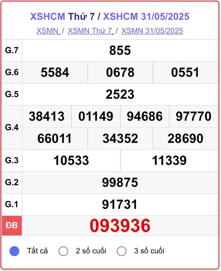 XSHCM 31/5, kết quả xổ số TP.HCM hôm nay 31/5/2025.