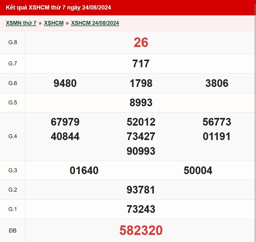 Kết quả xổ số TP.HCM hôm nay 26/8/2024, Xổ số TP.HCM ngày 26 tháng 8. Xổ số hôm nay 26/8. KQXSHCM 26/8. Xổ số TP.HCM thứ Hai. XSMN, XSHCM 26/8.