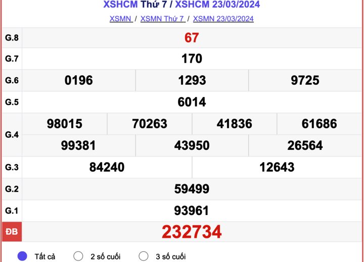 - Kết quả XSHCM ngày 23/3/2024