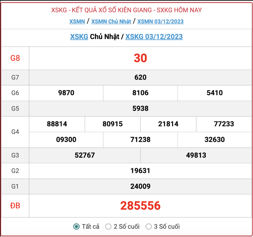 XSKG Chủ nhật, kết quả xổ số Kiên Giang hôm nay 3/12/2022