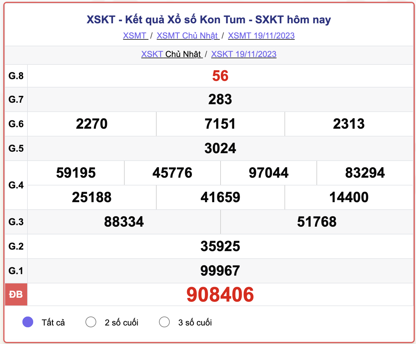 - Kết quả XSKT ngày 19/11/2023