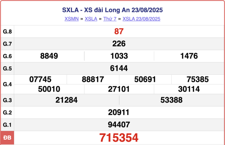 - XSLA 30/8, kết quả xổ số Long An thứ Bảy ngày 30/8/2025