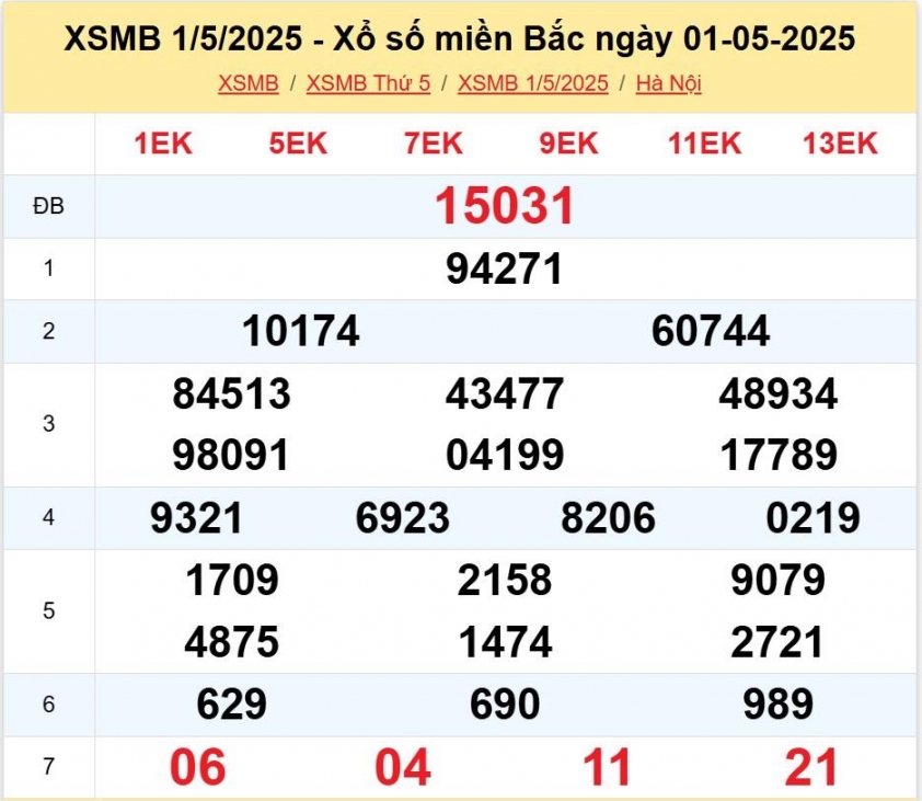 Kết quả xổ số miền Bắc (XSMB) hôm nay ngày 1/5