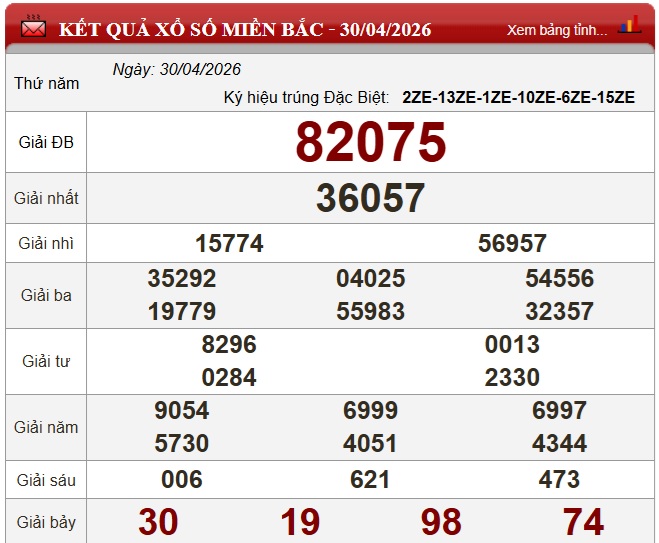 Kết quả Xổ số miền Bắc ngày 30/4/2026