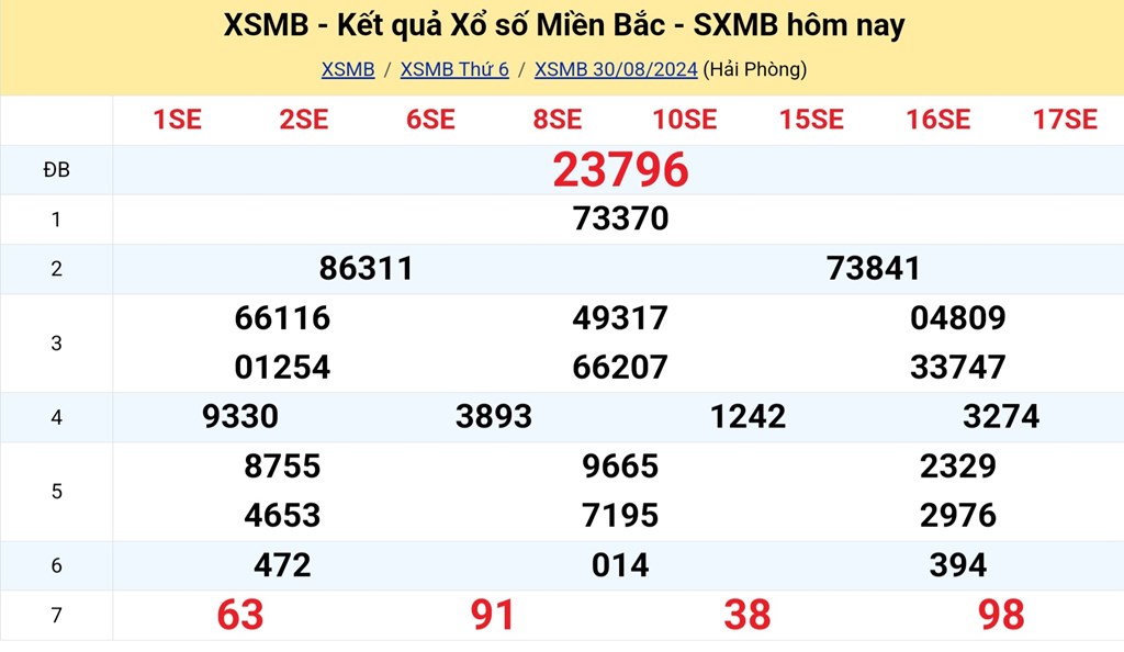 Kết quả xổ số miền Bắc ngày 30/8 - KQXSMB 30/8/2024 - XSMB 30/8.