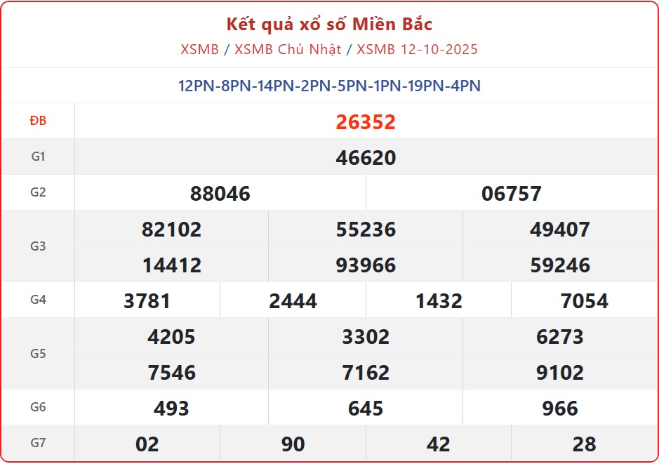 - Kết quả xổ số miền Bắc ngày 12/10. KQXSMB 12/10/2025. XSMB 12/10
