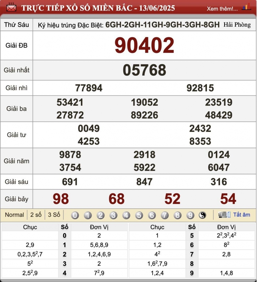 Kết quả xổ số miền Bắc (XSMB) ngày 13/6