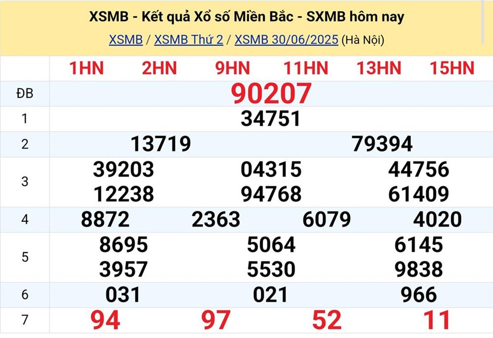 - XSMB 30/6/2025. Xem lại KQXSMB ngày 30/6/2025