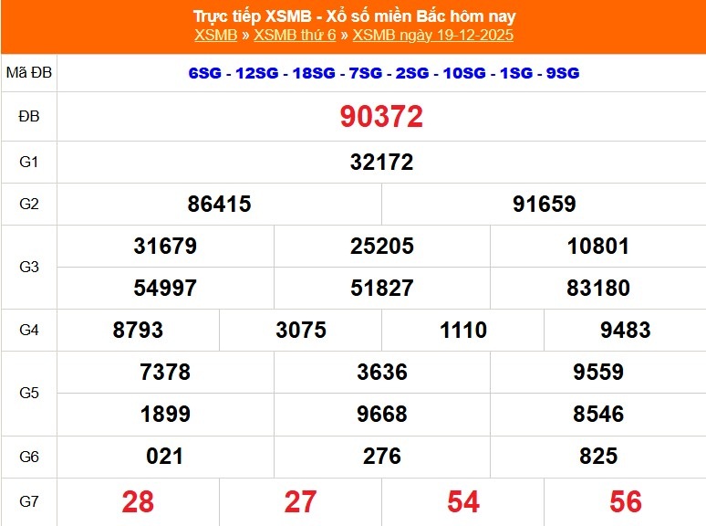 Cập nhật Kết quả xổ số miền Bắc hôm nay 20/12/2025 - XSMB 20/12/2025 nhanh nhất và chính xác nhất