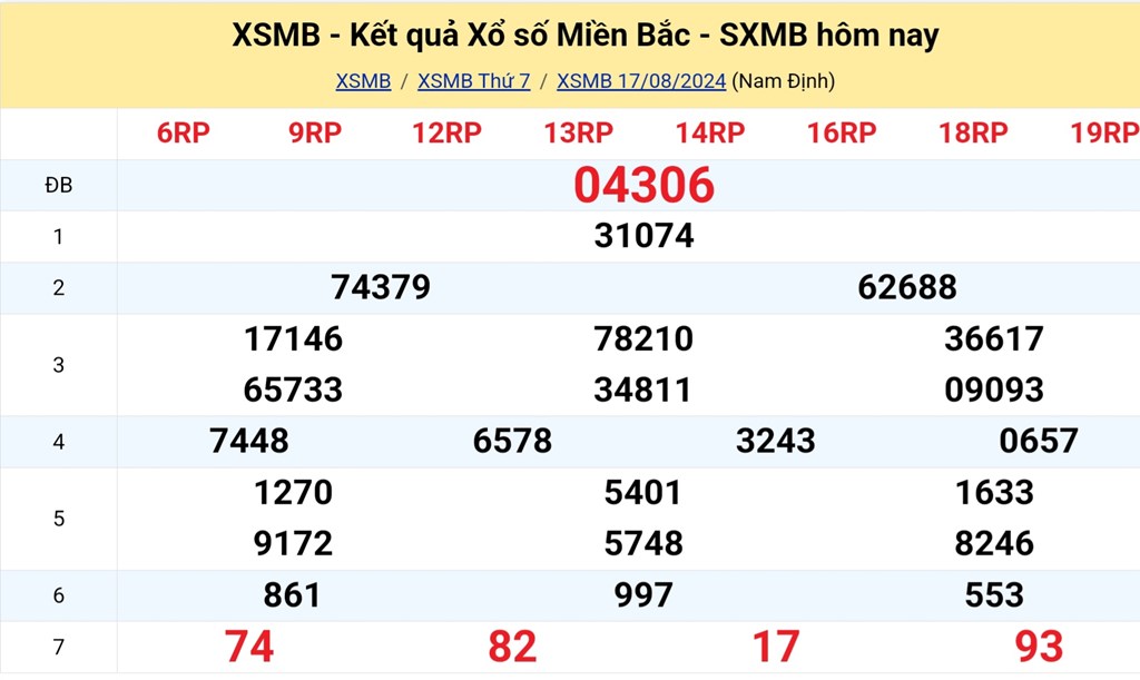 Kết quả xổ số miền Bắc ngày 17/8- KQXSMB 17/8/2024 - XSMB 17/8.