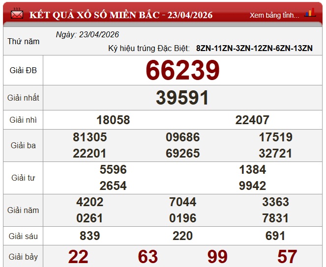 Kết quả xổ số miền Bắc (XSMB) hôm nay ngày 23/4