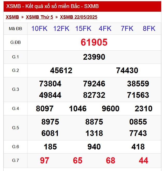 XSMB 22/5/2025. Xem lại KQXSMB ngày 22/2025