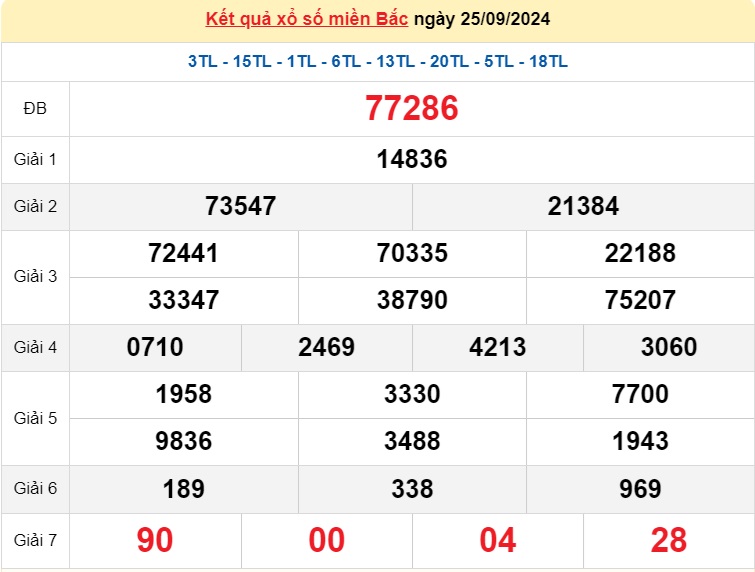 XSMB, Xổ số miền Bắc ngày 25 tháng 9