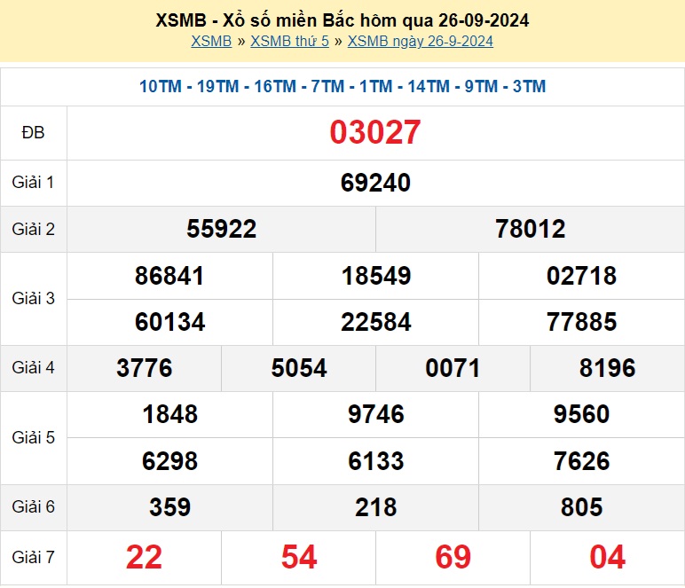 XSMB, Kết quả xổ số miền Bắc hôm nay 26/9/2024, Xổ số miền Bắc ngày 26/9