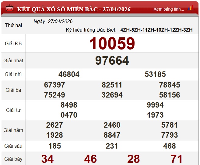 Cập nhật Kết quả xổ số miền Bắc hôm nay 28/4/2026 - XSMB 28/4/2026 nhanh nhất và chính xác nhất tới quý độc giả.