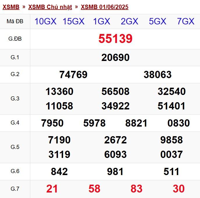 XSMB 1/6/2025. Xem lại KQXSMB ngày 1/6/2025