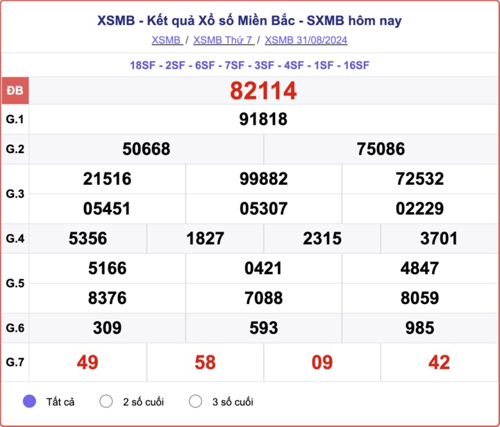 XSMB 31/8/2024