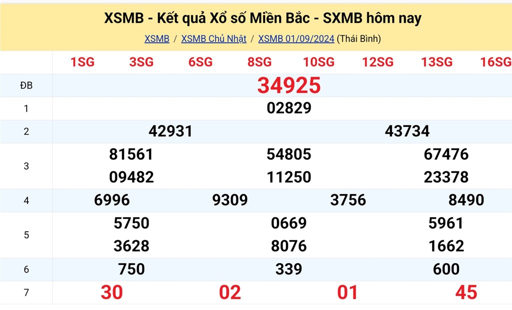 XSMB 1/9, kết quả xổ số miền Bắc hôm nay 1/9/2024.
