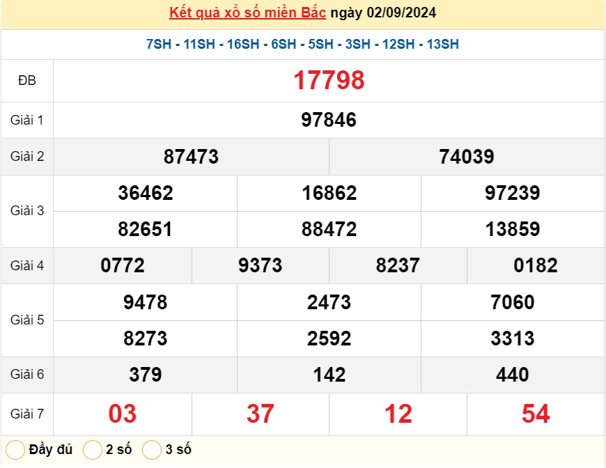 XSMB 2/9, kết quả xổ số miền Bắc hôm nay 2/9/2024.