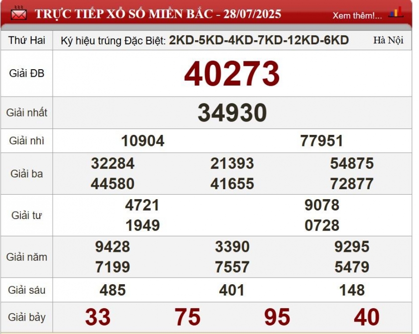 XSMB 28/7, kết quả xổ số miền Bắc (KQXSMB) ngày 28/7/2025.