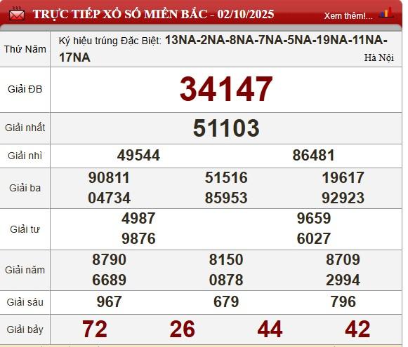 - Kết quả xổ số miền Bắc ngày 2/10. KQXSMB 2/10/2025. XSMB 2/10