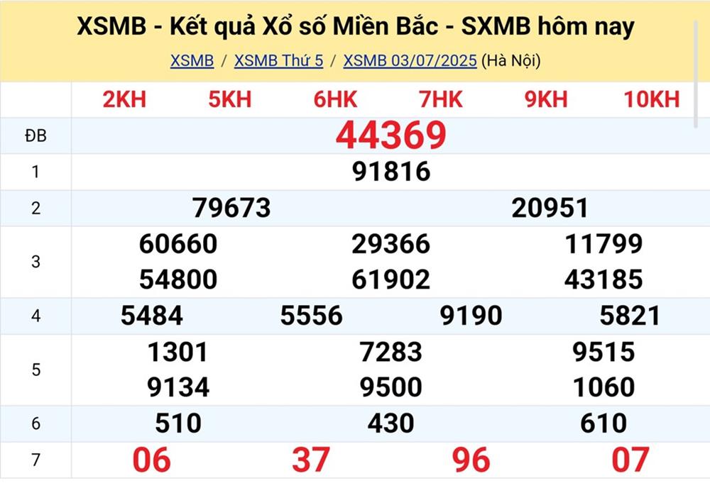 - XSMB 3/7/2025. Xem lại KQXSMB ngày 3/7/2025