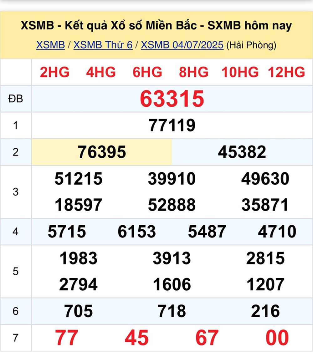 Kết quả xổ số miền Bắc ngày 7/7/2025. KQXSMB 7/7