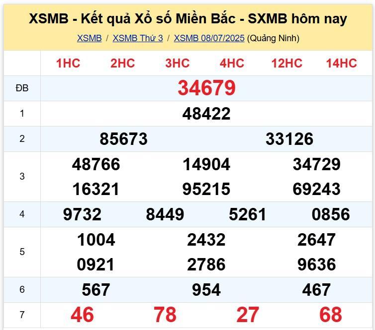 Cập nhật Kết quả xổ số miền Bắc hôm nay 8/7/2025 - XSMB 8/7/2025 nhanh nhất và chính xác nhất tới quý độc giả.