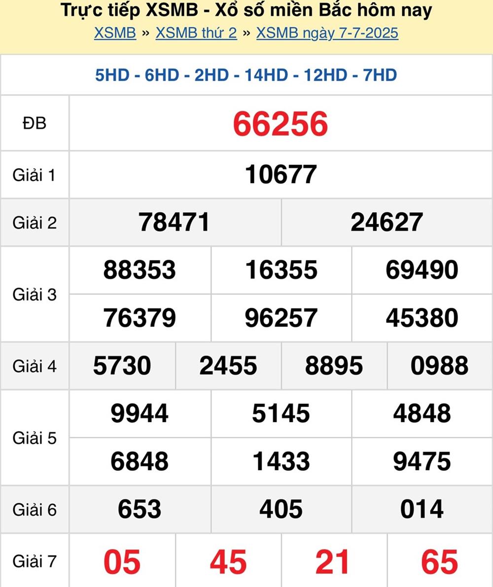 - XSMB 7/7/2025. Xem lại KQXSMB ngày 7/7/2025