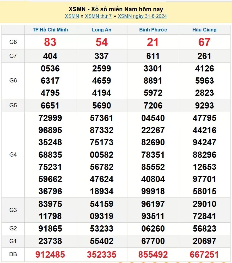 Kết quả xổ số miền Nam ngày 31/8 - KQXSMN 31/8/2024 - XSMN 31/8.