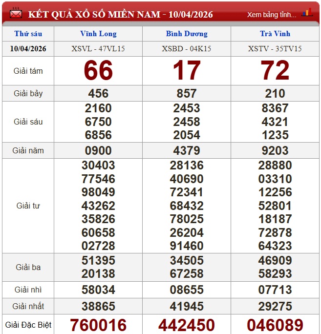 Kết quả xổ số miền Nam (XSMN) hôm nay ngày 10/4