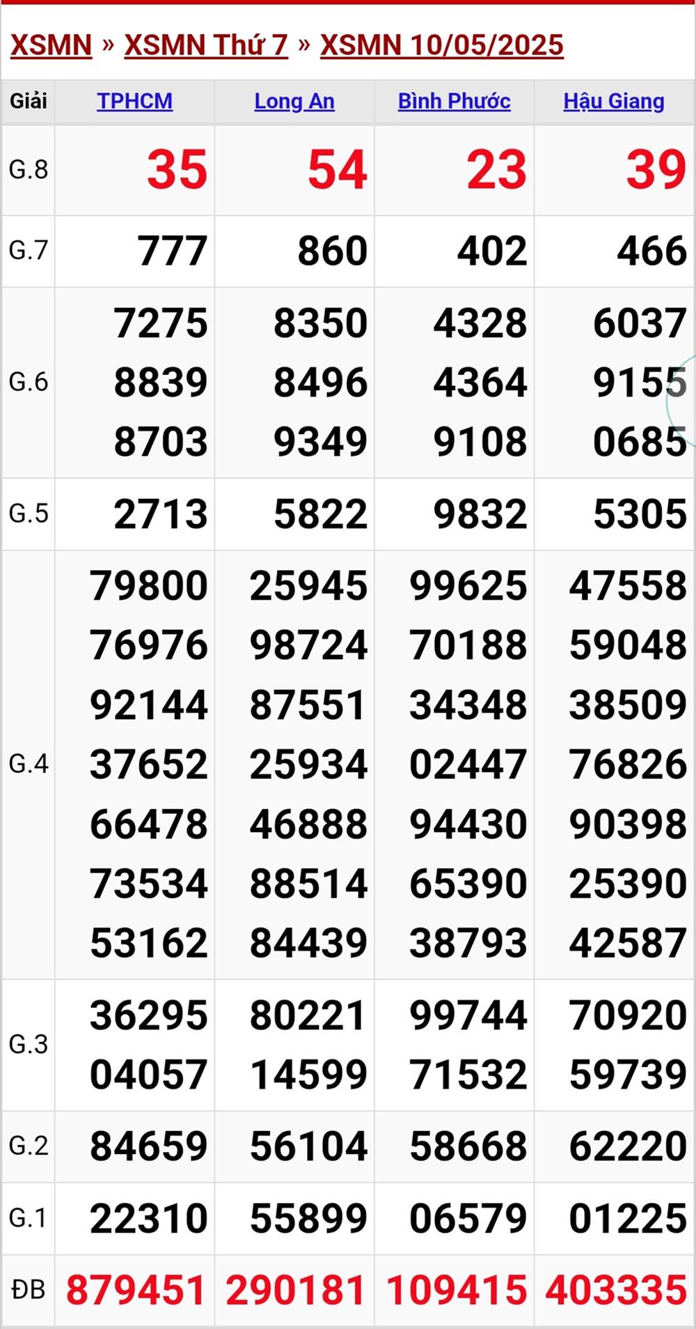 XSMN 10/5, kết quả xổ số miền Nam (KQXSMN) ngày 10/5/2025.