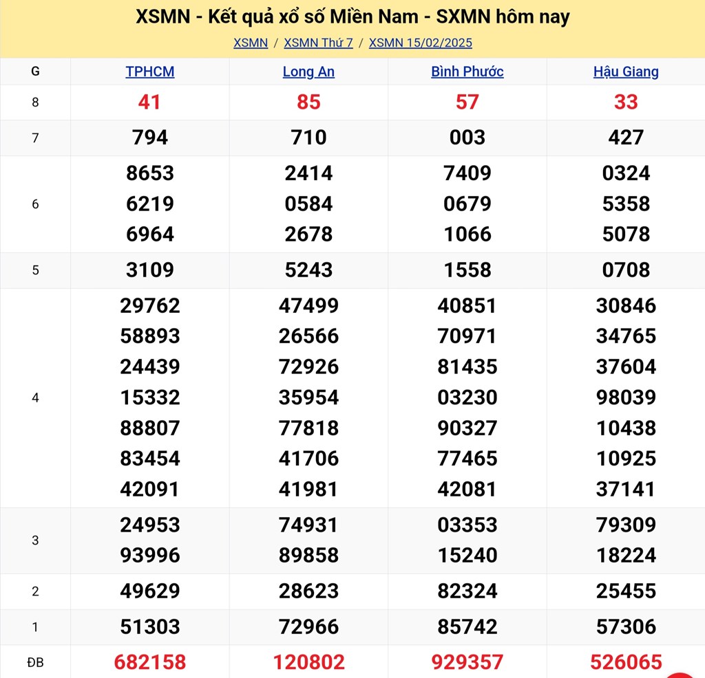 Trực tiếp Kết quả xổ số miền Nam hôm nay 16/2/2025, kết quả xổ số miền Nam hôm nay 15/2, Kết quả xổ số hôm nay chủ nhật ngày 16/2/2025