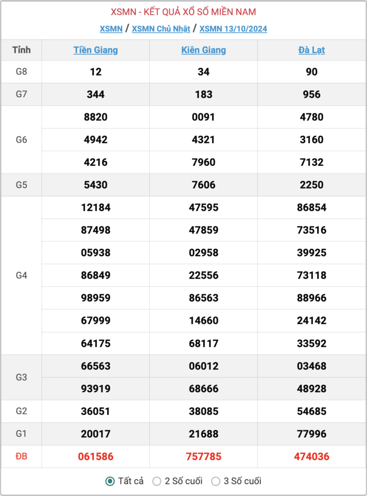 XSMN 13/10, kết quả xổ số miền Nam hôm nay 13/10/2024.