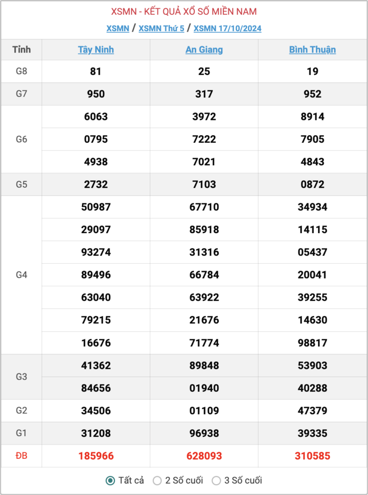 XSMN 17/10, kết quả xổ số miền Nam hôm nay 17/10/2024.
