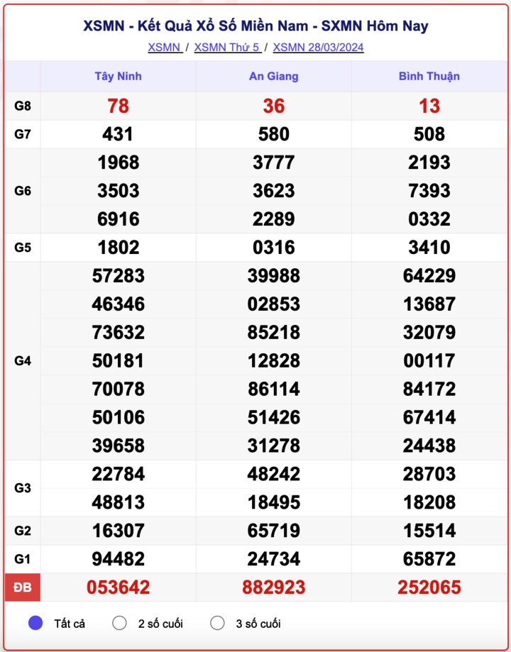 - Kết quả XSMN ngày 28/3/2024
