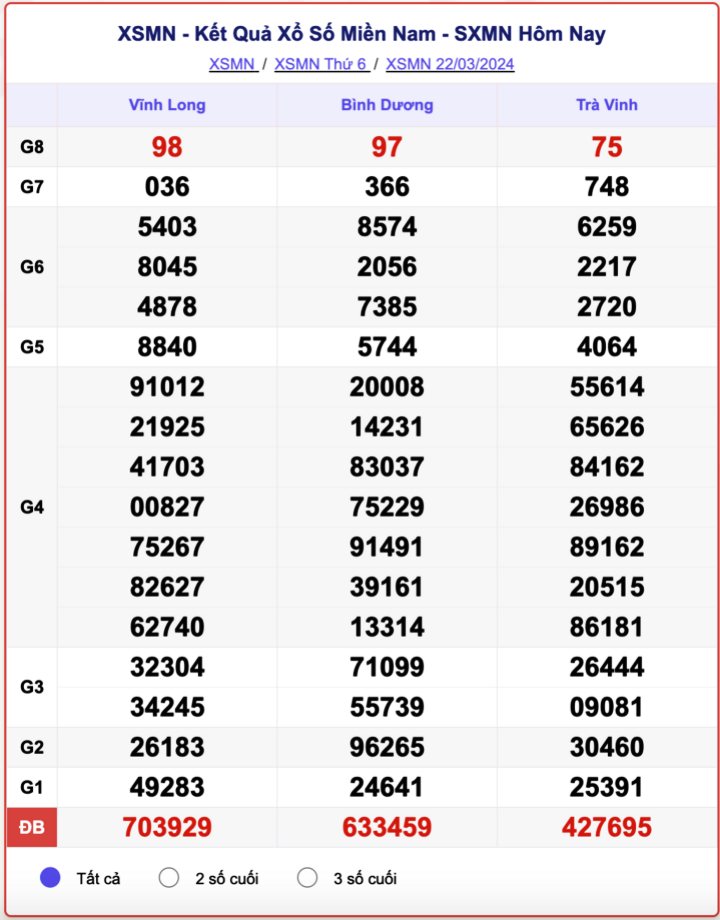 - Kết quả XSMN ngày 22/3/2024