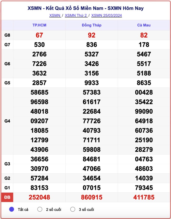 - Kết quả XSMN ngày 25/3/2024
