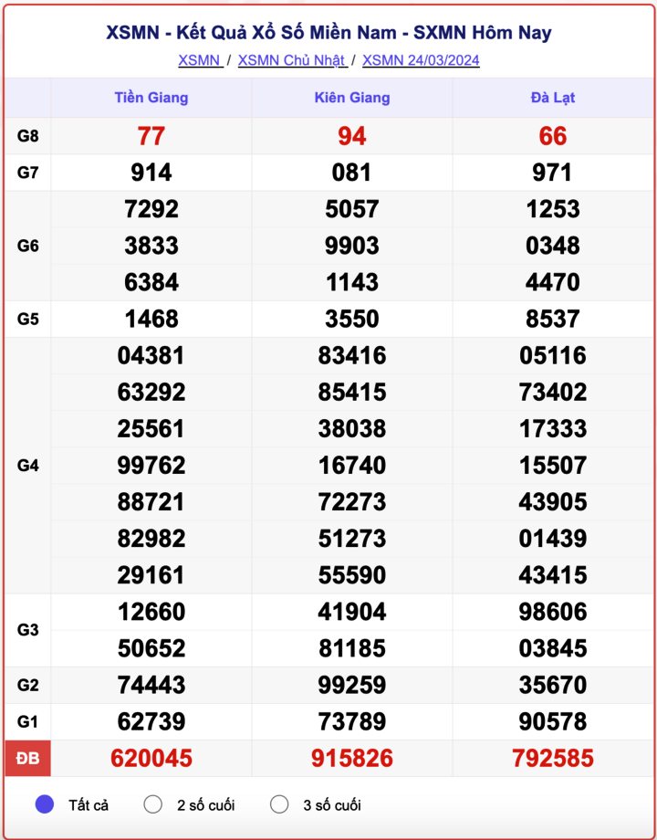 - Kết quả XSMN ngày 24/3/2024