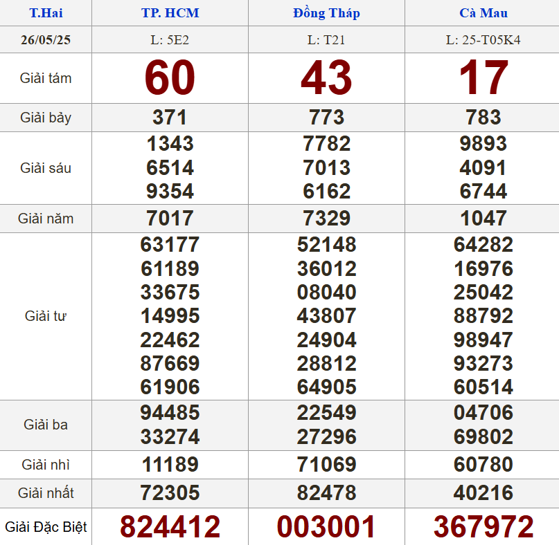 Cập nhật Kết quả xổ số miền Nam hôm nay 27/5/2025 - XSMN 27/5/2025 nhanh nhất và chính xác nhất tới quý độc giả.