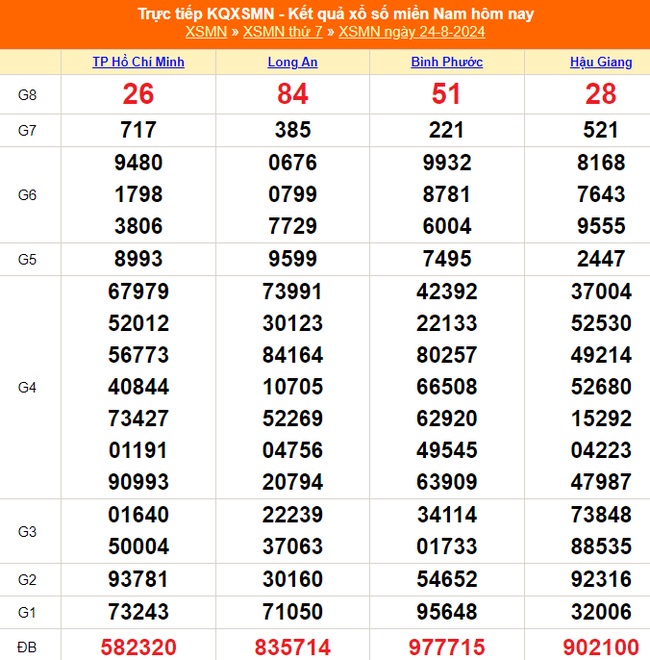 Kết quả xổ số miền Nam ngày 24/8 - KQXSMN 24/8/2024 - XSMN 24/8.
