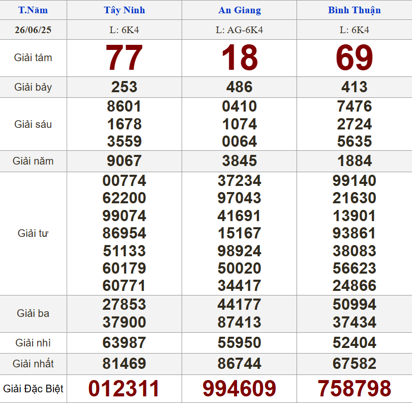 XSMN 26/6, kết quả xổ số miền Nam (KQXSMN) ngày 26/6/2025.