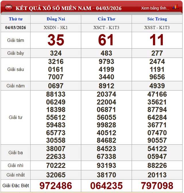 Kết quả xổ số miền Nam ngày 4/3/2026