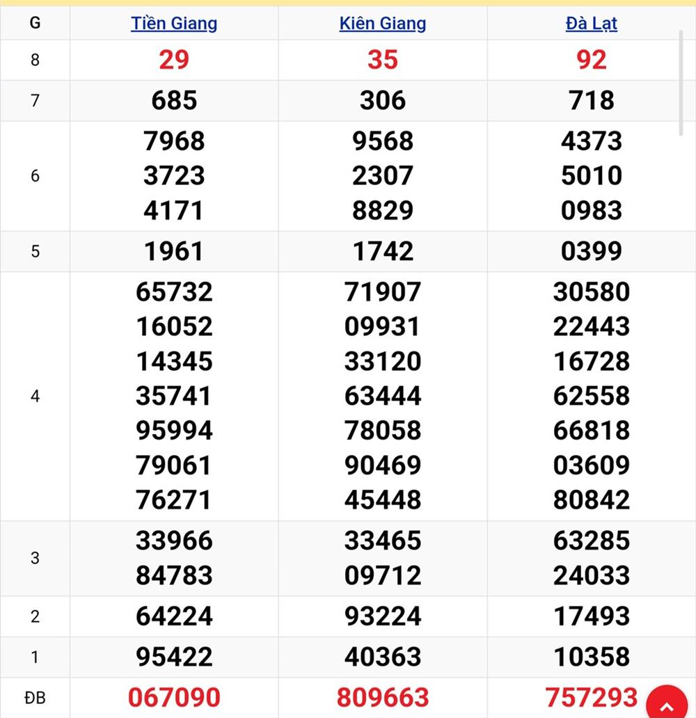 - Chủ nhật hàng tuần xổ số miền Nam được mở thưởng tại Kiên Giang, Tiền Giang, Đà Lạt