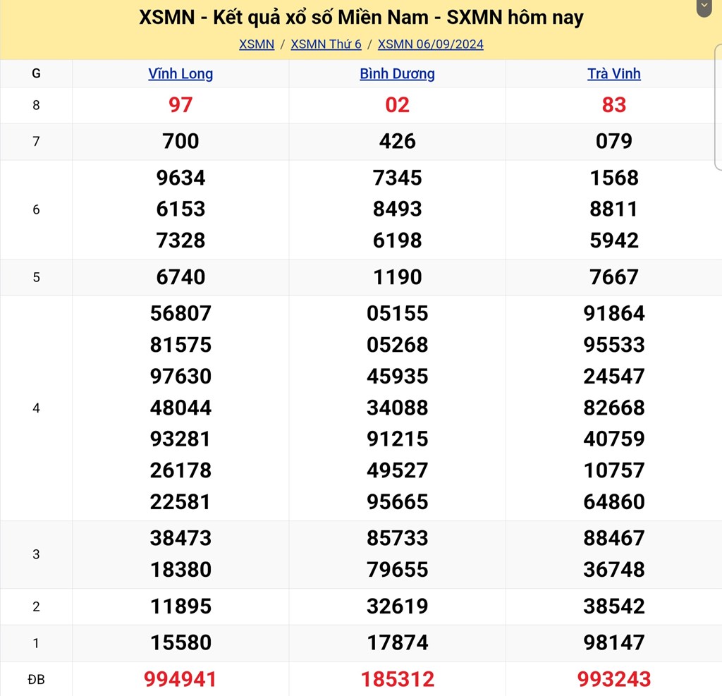 XSMN 6/9, kết quả xổ số miền Nam hôm nay 6/9/2024.