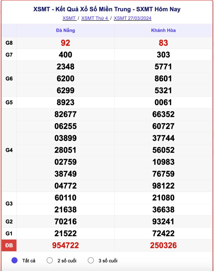 - Kết quả XSMT ngày 27/3/2024
