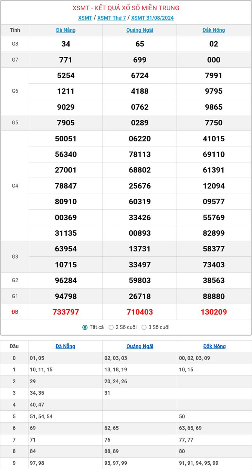 Kết quả xổ số miền Trung ngày 31/8 - KQXSMT 31/8/2024 - XSMT 31/8.