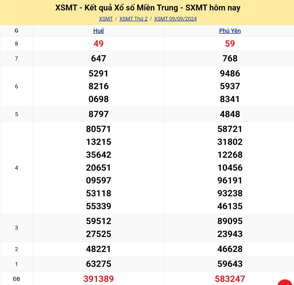XSMT 9/9, kết quả xổ số miền Trung hôm nay 9/9/2024.